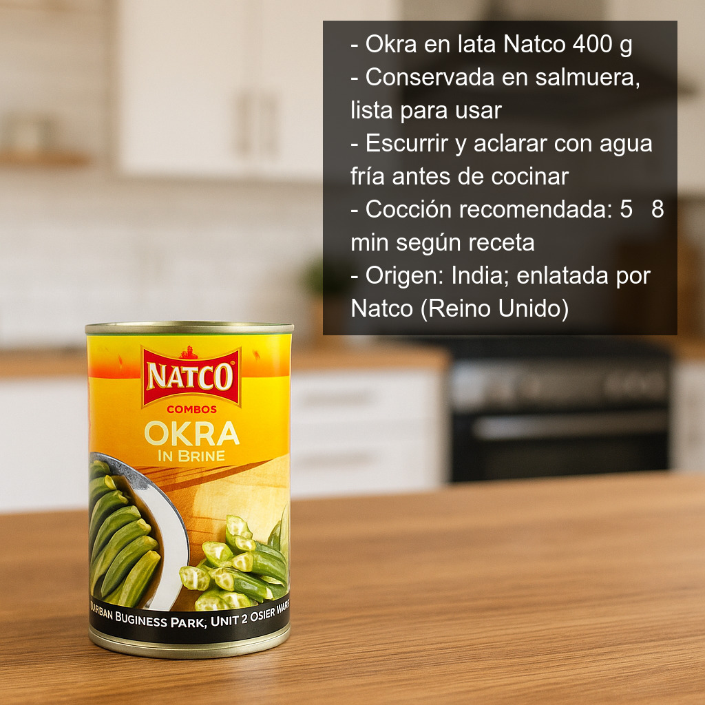 Esta okra en conserva es una opción práctica para tener siempre a mano en la despensa: viene ya preparada y envasada, ideal para cocinar de forma rápida sin renunciar a ingredientes auténticos.