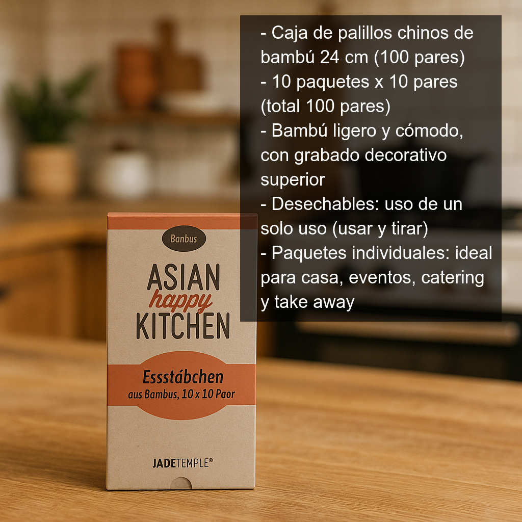 Fabricados en bambú, estos palillos son ligeros y cómodos de usar. Con un largo de 24 cm, ofrecen un agarre estable para disfrutar de platos como sushi, ramen, wok, arroz, fideos, gyozas y todo tipo de aperitivos. Al ser un producto de un solo uso, resultan ideales cuando necesitas una solución rápida sin renunciar a una buena presentación.