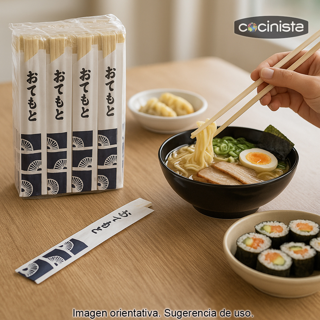 Perfectos para disfrutar de sushi, ramen, wok, noodles, dumplings y todo tipo de platos orientales, estos palillos ofrecen un agarre cómodo y una experiencia auténtica. Al ser de un solo uso, facilitan el servicio y la limpieza, especialmente en reuniones, catering, food trucks o restaurantes.