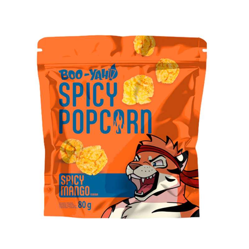 Las palomitas picantes sabor mango Boo-Yah! son un snack original que combina el crujiente de las palomitas con un llamativo equilibrio entre dulzor afrutado y toque picante. Su mezcla de sabores las convierte en una opción diferente para quienes buscan aperitivos fuera de lo habitual.