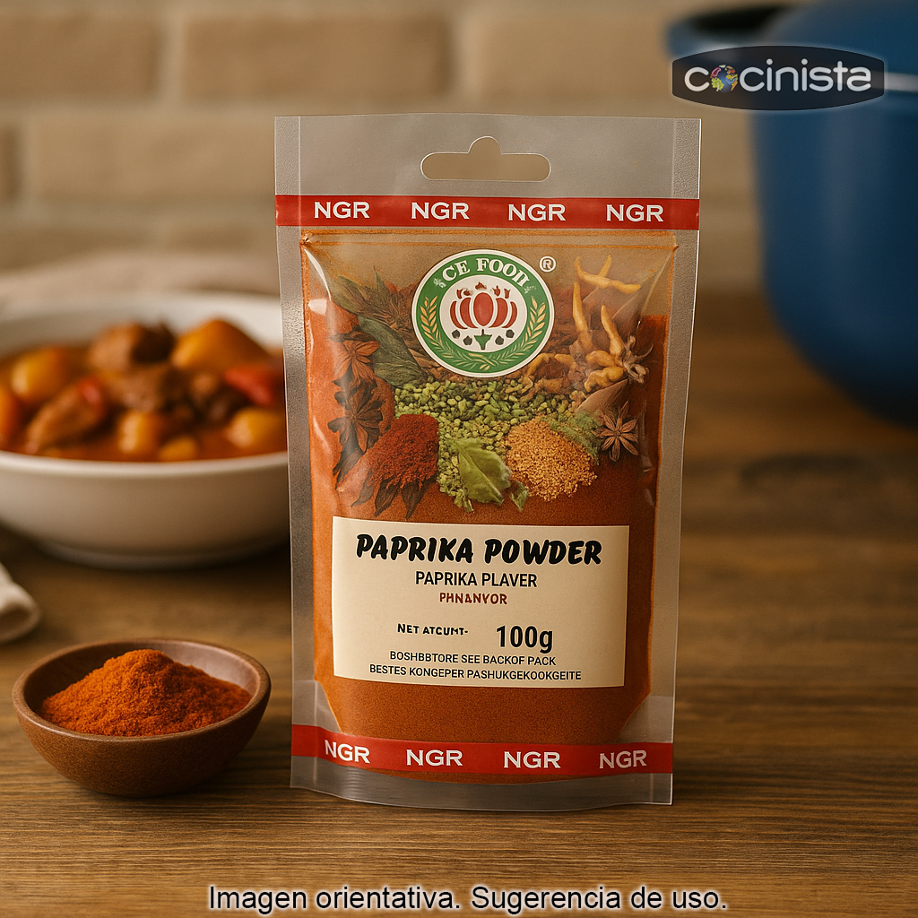 El pimentón paprika es un básico de despensa que realza tanto platos tradicionales como preparaciones modernas. Su perfil aromático combina notas dulces y tostadas con un punto de calor moderado, lo que lo convierte en un condimento versátil para el día a día.