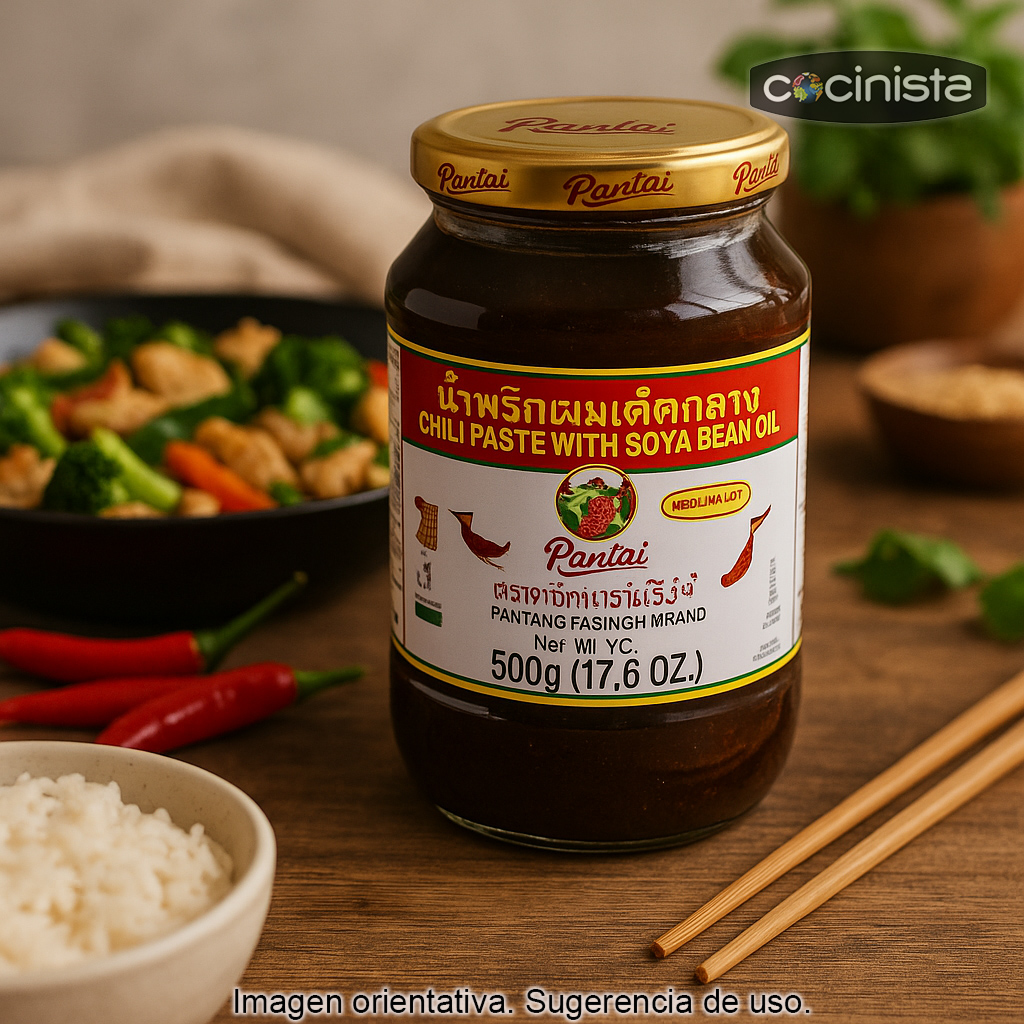 La pasta de chiles picante medio es un condimento imprescindible para quienes disfrutan de la cocina asiática con un toque de calor equilibrado. Elaborada a partir de una mezcla de chiles rojos y aceite vegetal, esta preparación es la base de innumerables recetas de la gastronomía tailandesa, china y del Sudeste Asiático, aportando aroma, color y un picante sabroso que realza cualquier plato sin enmascarar el resto de ingredientes.