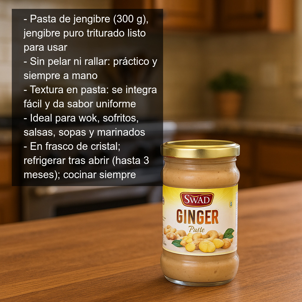 Su textura en pasta permite integrarla fácilmente en salteados, sofritos, salsas y marinados, consiguiendo un sabor uniforme en cada preparación. Es ideal para quienes cocinan habitualmente platos de inspiración oriental o buscan un ingrediente versátil para dar frescor y un punto ligeramente picante a carnes, pescados y verduras.