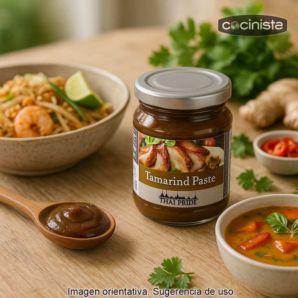 La pasta de tamarindo tailandesa es un ingrediente clave para conseguir el auténtico sabor de la cocina tailandesa, especialmente en salsas, currys y salteados donde se busca ese toque cítrico y profundo tan característico. Es ideal para ajustar el punto de acidez sin recurrir a vinagres o cítricos, aportando además un matiz caramelizado muy agradable.