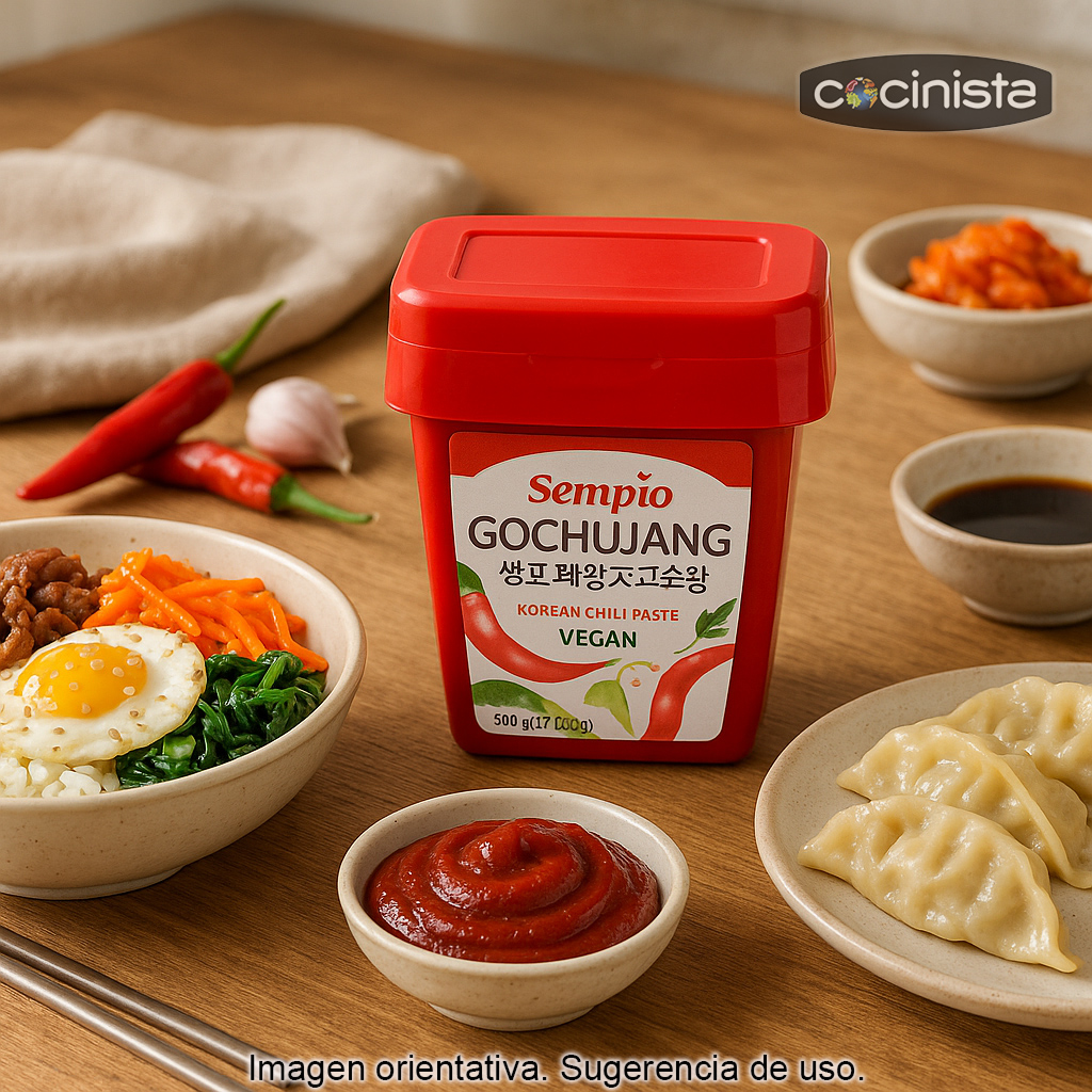Se presenta en terrina de 500 g, ideal para quienes cocinan con frecuencia recetas asiáticas o quieren tener un básico coreano siempre a mano.