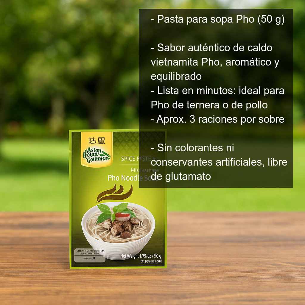 - Formato: pasta para caldo Pho en sobre (50 g).