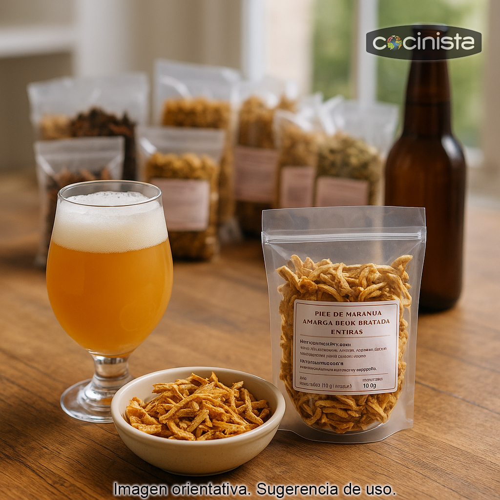 Aunque está pensada para homebrewing, esta piel de naranja amarga también puede usarse para aromatizar infusiones, jarabes, postres o cócteles (siempre ajustando la cantidad, ya que su sabor es intenso).