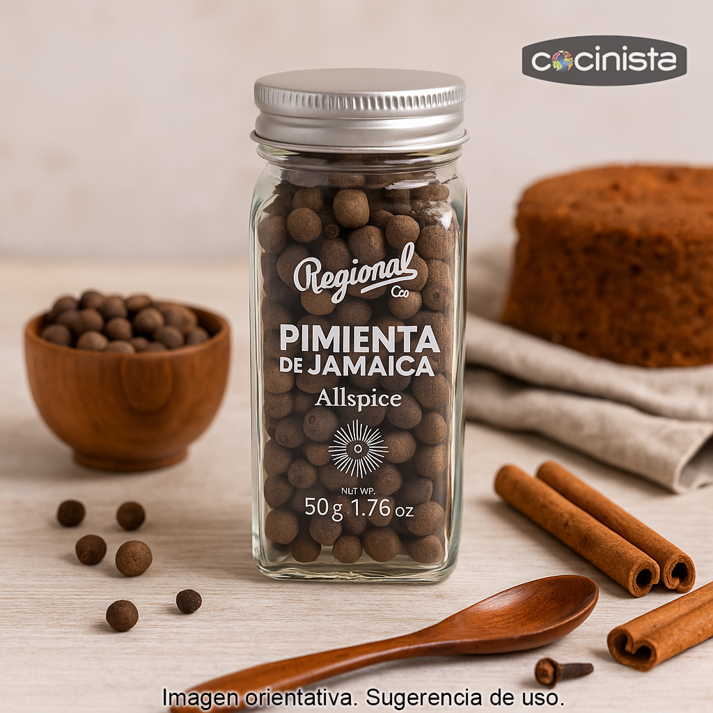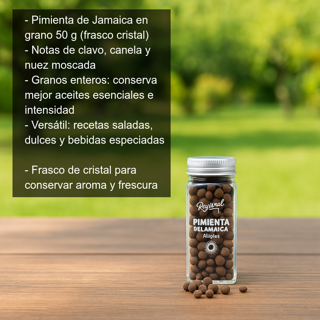 Pimienta de Jamaica en frasco de cristal de 40 g, una especia aromática muy versátil en tu despensa. También conocida como allspice, se caracteriza por un perfil de sabor único que recuerda a una mezcla de clavo, canela y nuez moscada, con un fondo cálido y ligeramente dulce. Es perfecta para dar profundidad a recetas saladas y dulces, aportando un toque especiado elegante sin dominar el resto de ingredientes.