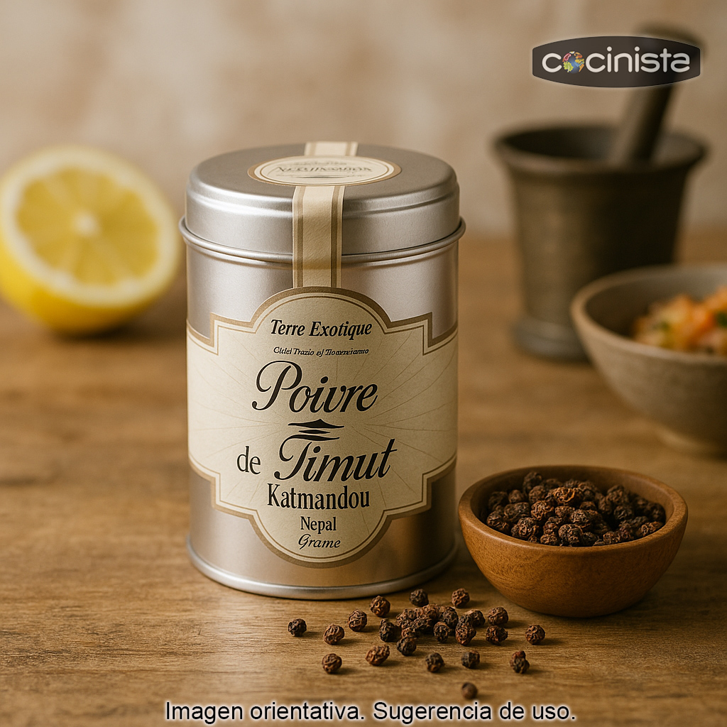 Para obtener el máximo perfume, lo ideal es machacar o moler la pimienta de Timut justo antes de usarla. También puedes tostarla muy ligeramente en una sartén seca durante unos segundos (sin quemarla) para potenciar sus notas cítricas. Añádela al final de la cocción o en preparaciones en frío para que el aroma se mantenga vivo.