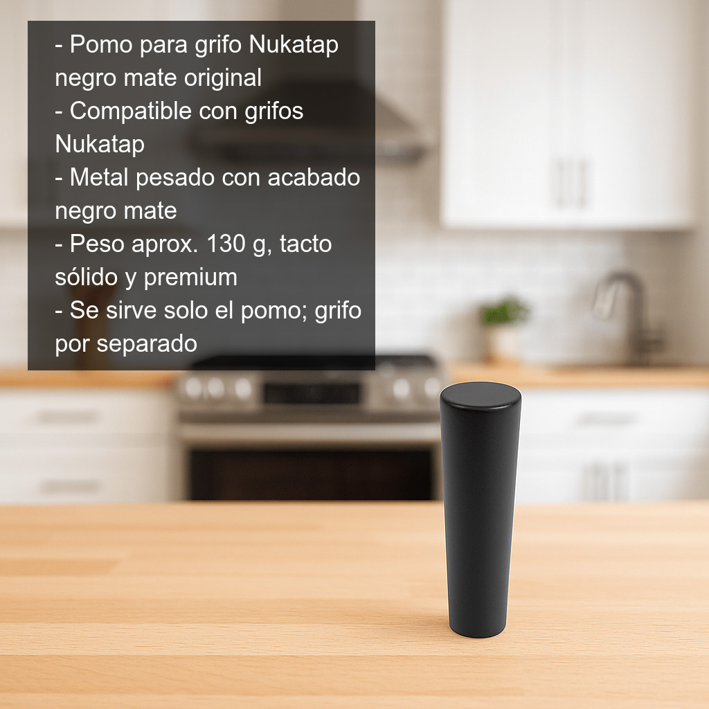 Pomo para grifo Nukatap negro mate original, diseñado para aportar un acabado elegante y profesional a tu tirador de cerveza. Este pomo es compatible con los grifos Nukatap y está fabricado en metal pesado con un resistente acabado negro mate, ideal para barras domésticas, kegerators y equipos de dispensado en hostelería.