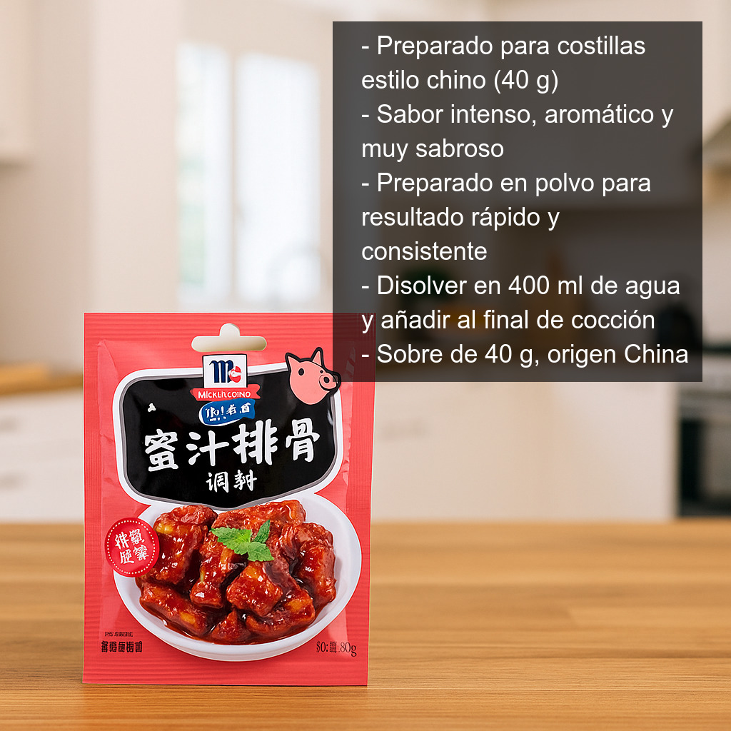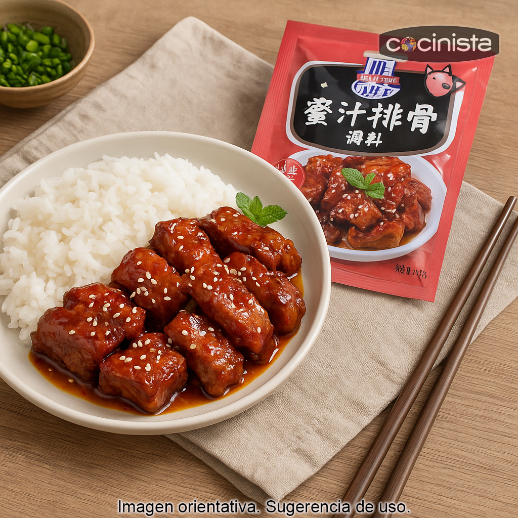 Este sobre es una solución práctica para quienes quieren disfrutar de unas costillas al estilo chino sin complicaciones, con una salsa que se integra muy bien con la carne y deja un acabado brillante y apetecible.