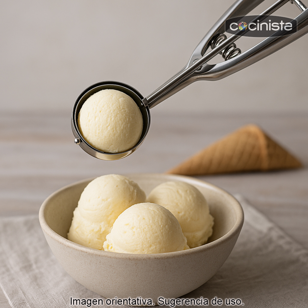 - Uso: racionador/cuchara para helado con expulsor