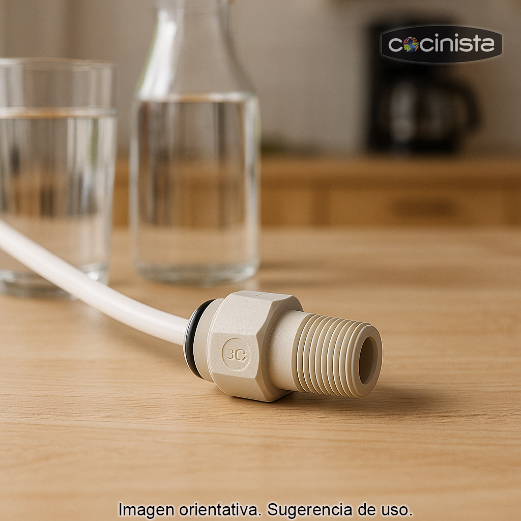 - Tipo de conexión: rosca macho 1/4" BSPT a tubo 3/8" (10 mm).