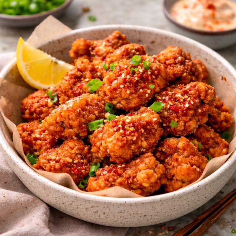 Karaage picante (pollo frito japonés con un toque picante)