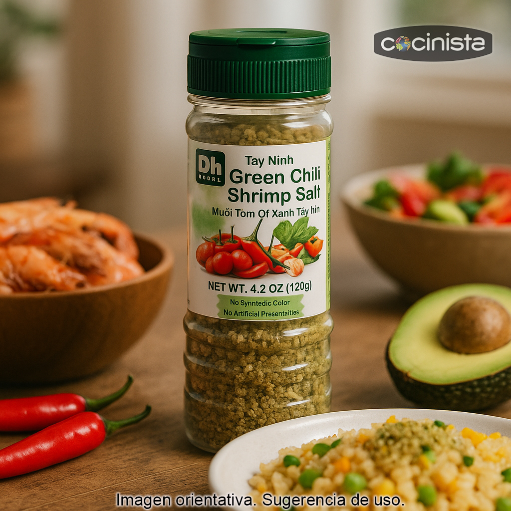 - Empieza con poca cantidad y ajusta: su sabor a gamba y el picante suave se perciben rápidamente.