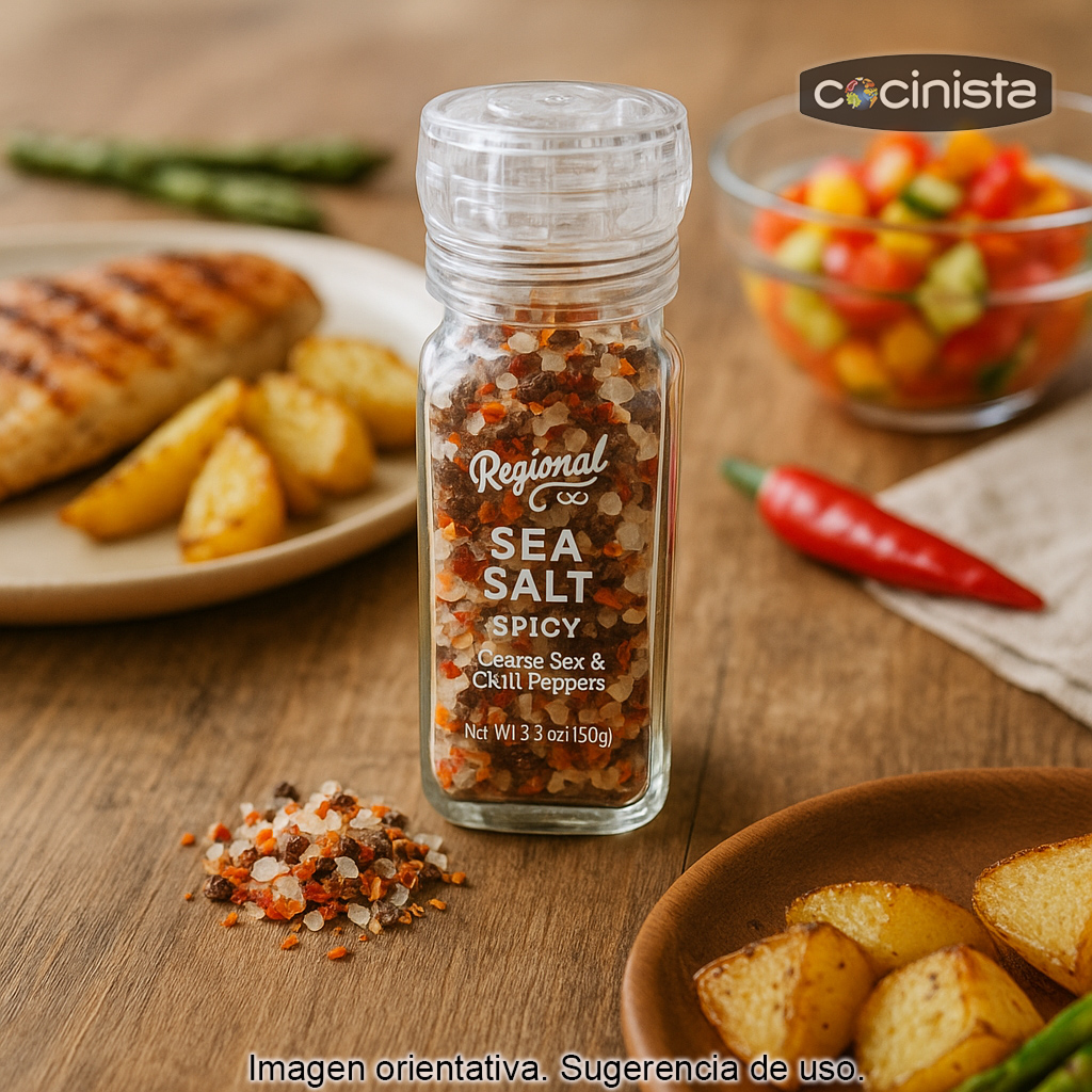 Gracias a su perfil versátil, esta sal con pimiento picante funciona tanto en cocina diaria como en platos más especiales. Es ideal para sazonar al final o durante la cocción, y también para rematar preparaciones justo antes de servir.