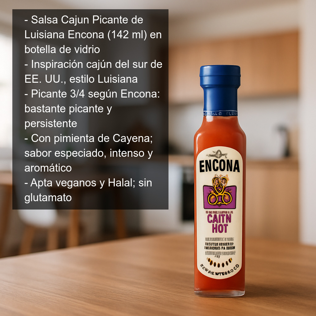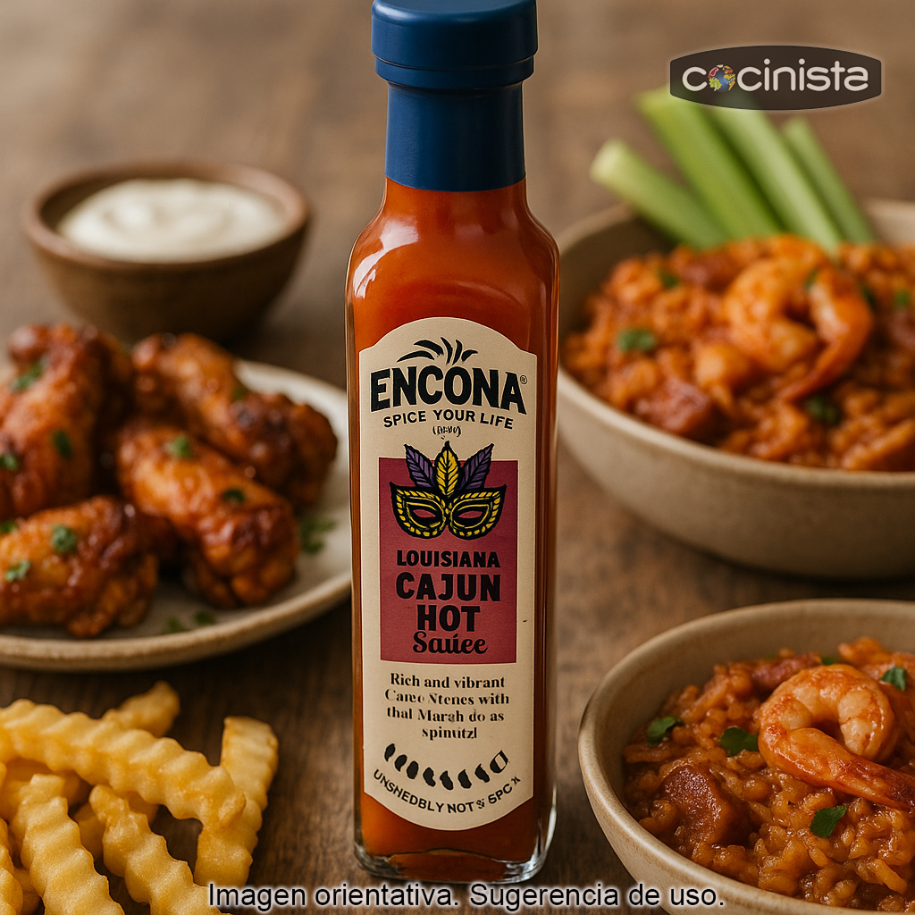 La Salsa Cajun Picante de Luisiana Encona es una salsa de inspiración cajún que rinde homenaje a la gastronomía del sur de Estados Unidos, especialmente al carismático estado de Luisiana. Su perfil de sabor combina la herencia de la cocina africana con matices de influencia francesa, dando como resultado una salsa intensa, aromática y con carácter. En esta receta destaca la pimienta de Cayena, responsable de su picor vivo y persistente.