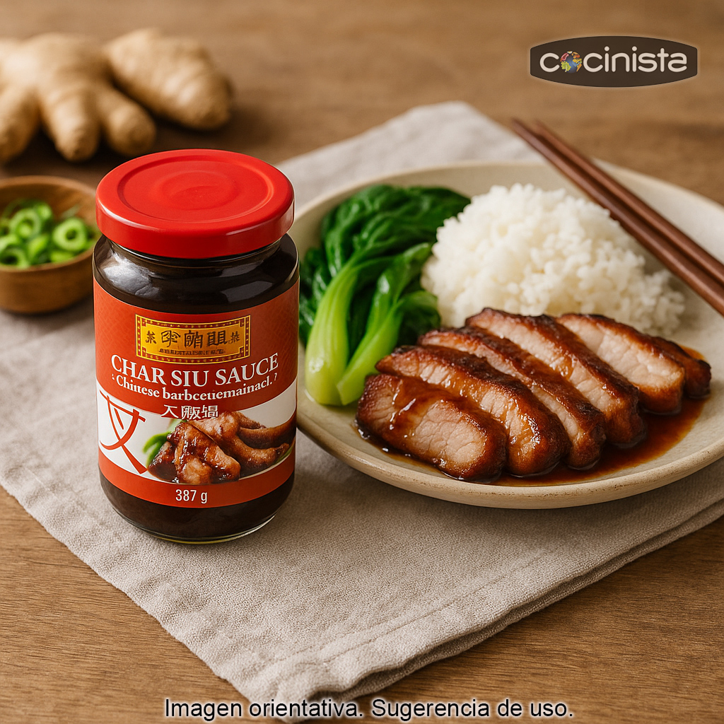 El Char Siu es un marinado tradicional originario de Cantón (sur de China) que se utiliza especialmente para carne de cerdo —habitualmente lomo o panceta—, que después se asa y se corta en tiras finas. Con esta salsa podrás conseguir ese sabor característico de la cocina china de restaurante, de forma rápida y con resultados consistentes.