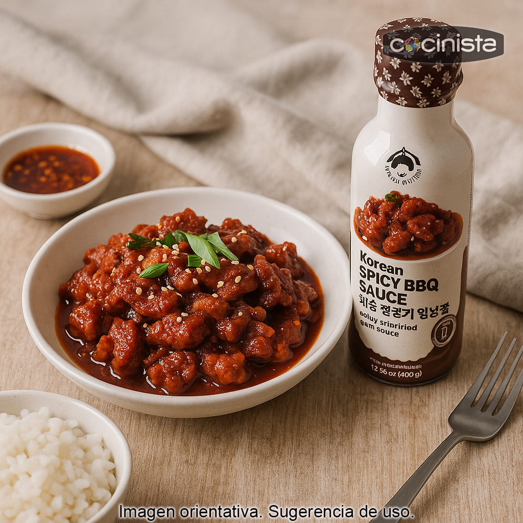 Gracias a su textura y su sabor concentrado, es una opción muy versátil para preparar en casa platos de inspiración coreana como costillas BBQ, pollo estilo coreano, tiras de ternera salteadas o verduras crujientes con un toque picante. Lista para usar, te permite disfrutar del auténtico estilo barbacoa coreana de forma rápida y sencilla.