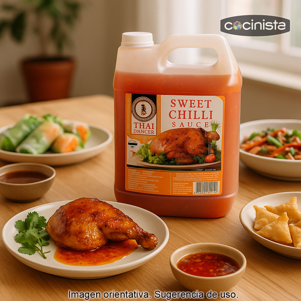 Si buscas una salsa de chile dulce tailandesa versátil, con un sabor equilibrado y apta para múltiples aplicaciones, este formato profesional de 5 L es una opción excelente para mantener siempre a mano un clásico de la cocina asiática.