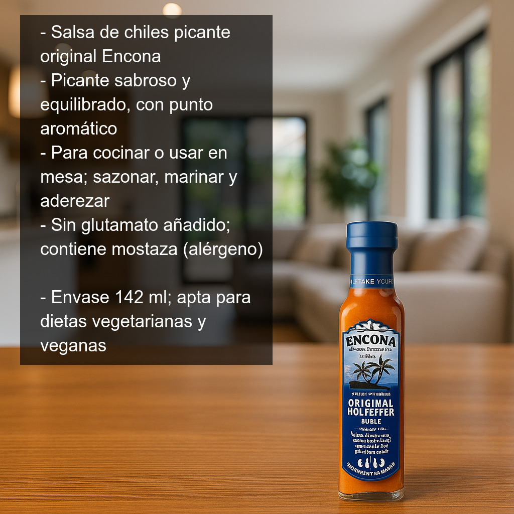 La Salsa de chiles picante original Encona es un clásico imprescindible para quienes buscan un picante sabroso y equilibrado, ideal para dar carácter a tus recetas del día a día. Su perfil de sabor combina el toque intenso del chile con un punto aromático que realza los ingredientes sin enmascararlos, convirtiéndola en una salsa perfecta tanto para cocinar como para usar directamente en la mesa.