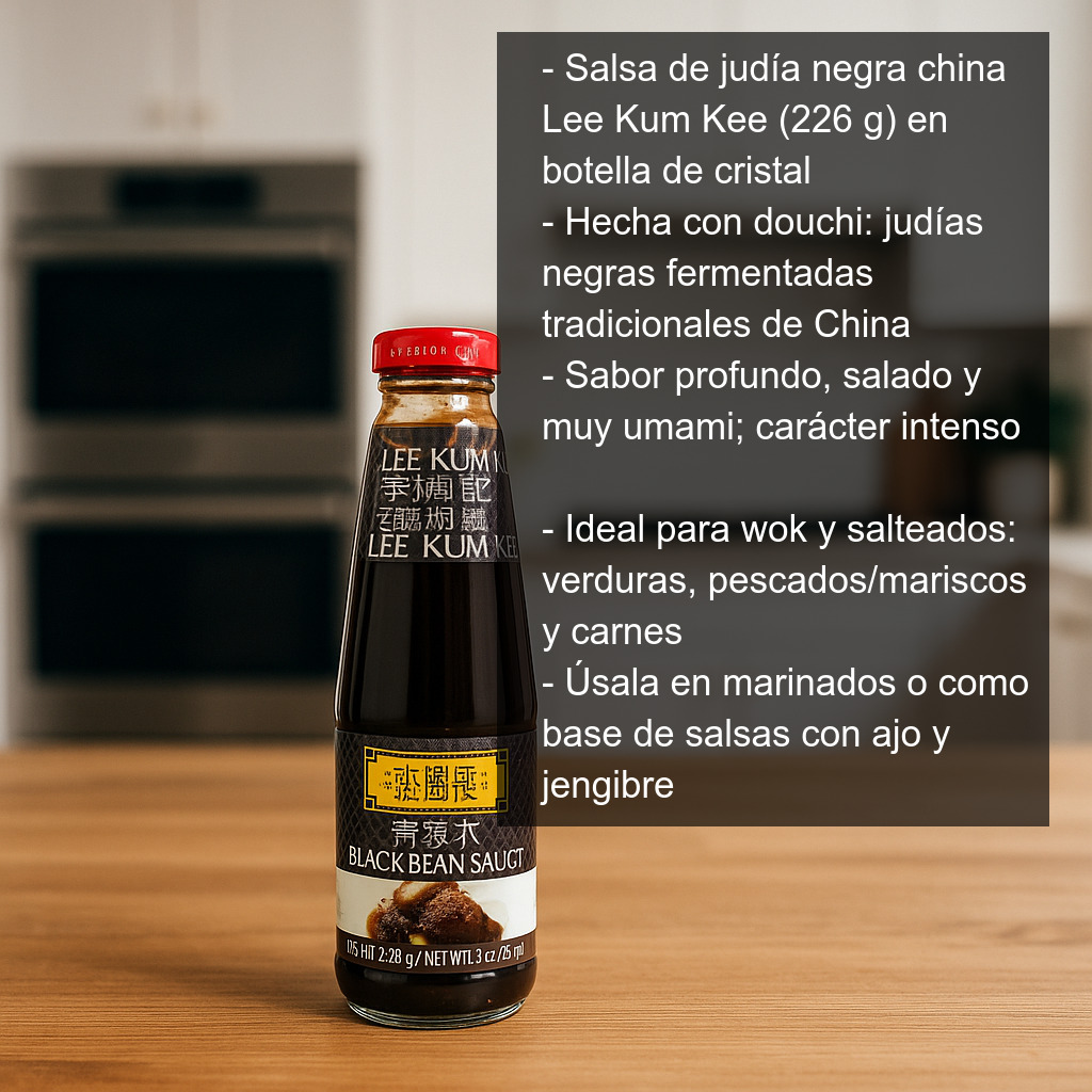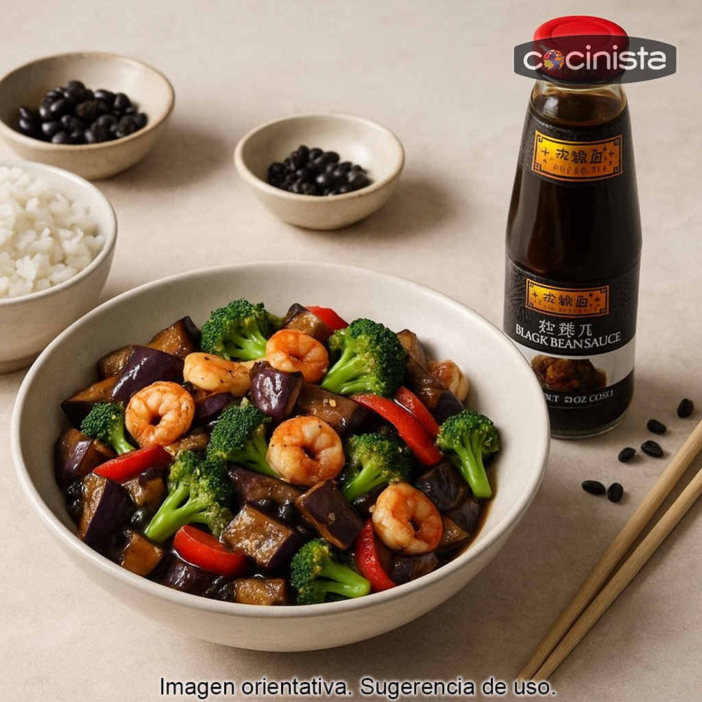 Esta salsa de judías negras Lee Kum Kee es ideal para dar autenticidad a recetas de wok y salteados: combina especialmente bien con verduras (berenjena, judías verdes, brócoli), pescados y mariscos (gambas, calamar), y carnes (pollo, cerdo o ternera). También funciona como base para salsas más complejas, mezclándola con ajo, jengibre, un toque de azúcar o un chorrito de salsa de soja, según el estilo de la receta.