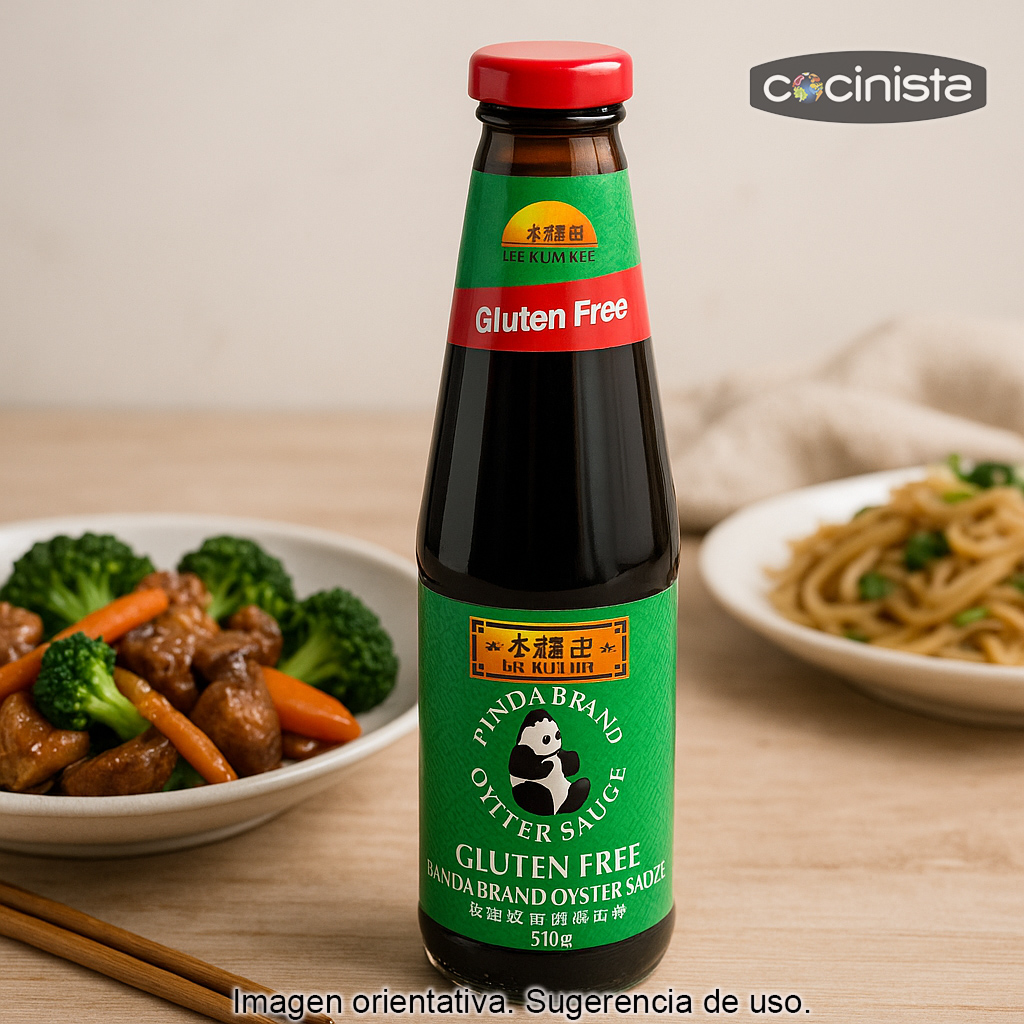 La Salsa de Ostras sin gluten Panda (LKK) 510 g es un condimento imprescindible de la cocina asiática, ideal para aportar sabor umami, profundidad y un toque ligeramente dulce-salado a tus recetas. Su textura densa y su perfil aromático la convierten en una salsa muy versátil tanto para cocinar como para terminar platos. En esta versión, además, viene certificada sin gluten, perfecta para quienes siguen una dieta sin gluten sin renunciar al auténtico sabor.