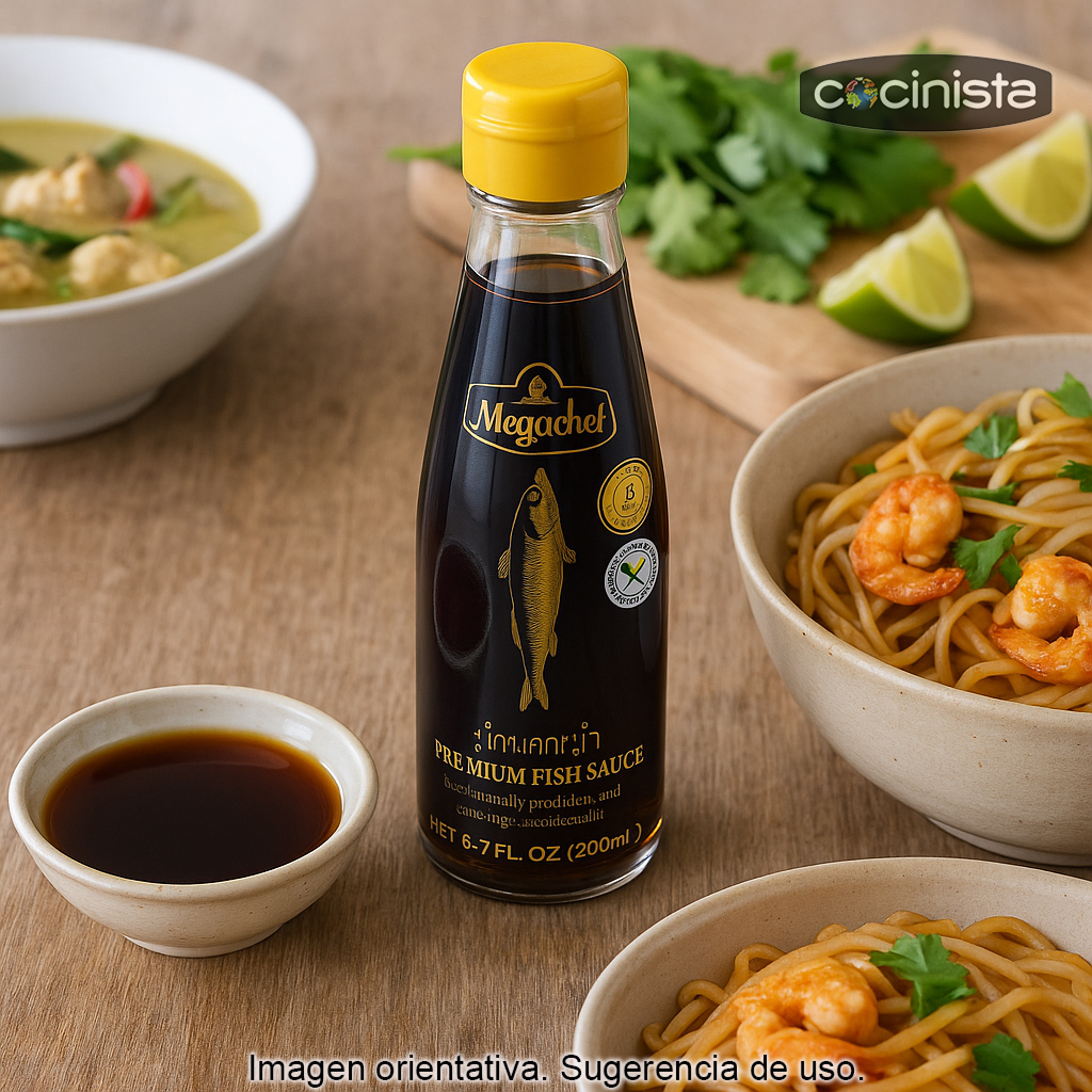 Perfecta para quienes buscan una salsa de pescado tailandesa de calidad para cocinar en casa platos de estilo Thai o Vietnamita, tanto en preparaciones rápidas como en guisos de cocción lenta.