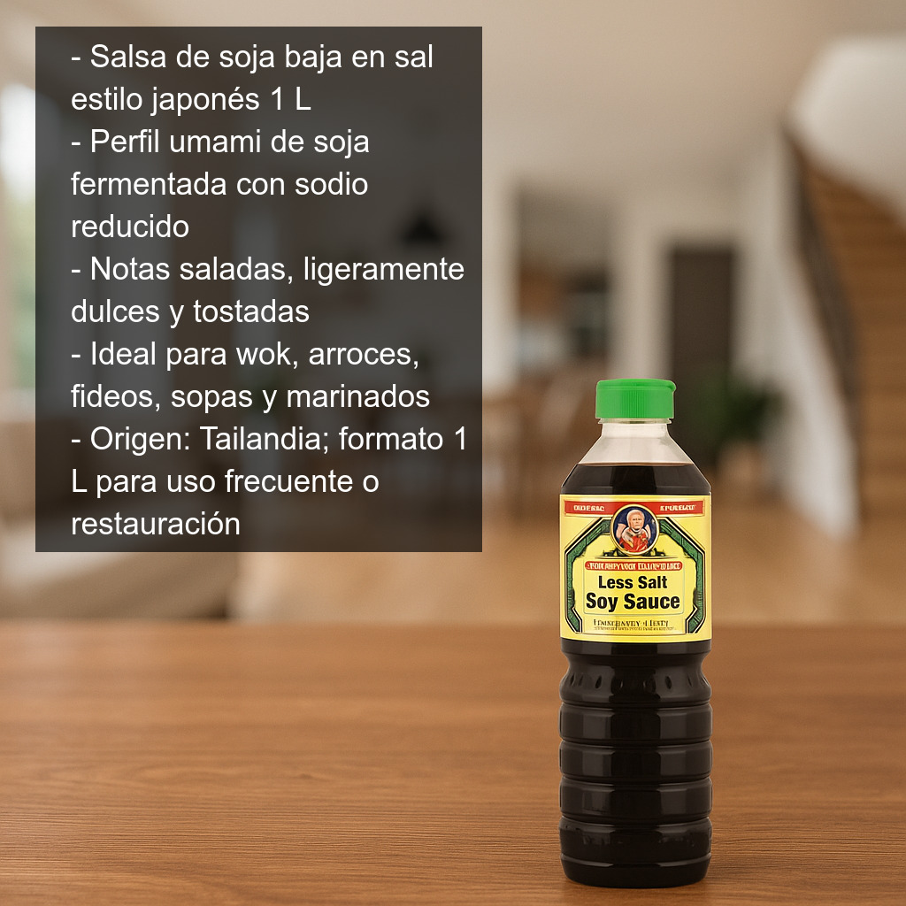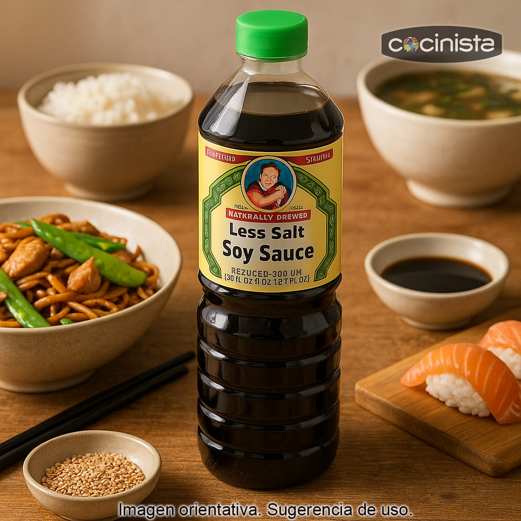 Esta variedad está pensada para quienes desean una alimentación más controlada en sodio sin perder el carácter de la salsa de soja tradicional. Gracias a su fermentación, aporta complejidad aromática y un sabor redondo que funciona como potenciador natural en multitud de recetas.