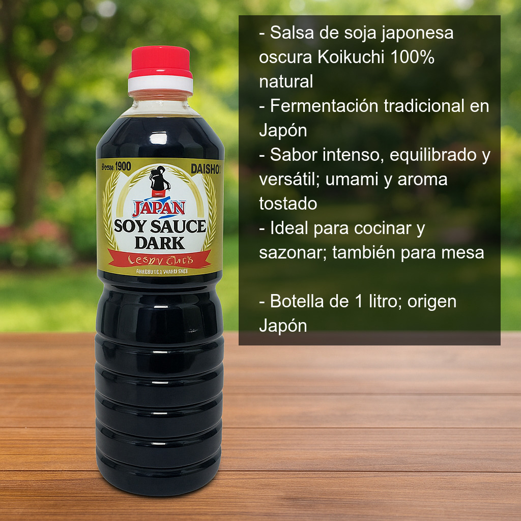 Salsa de soja japonesa oscura (Koikuchi) 100% natural, elaborada en Japón siguiendo un proceso tradicional de fermentación que aporta un sabor intenso, equilibrado y muy versátil. La soja Koikuchi es la variedad más utilizada en la cocina japonesa: destaca por su color oscuro, su aroma tostado y su punto umami, ideal para realzar el sabor de carnes, pescados, verduras, arroces y fideos.