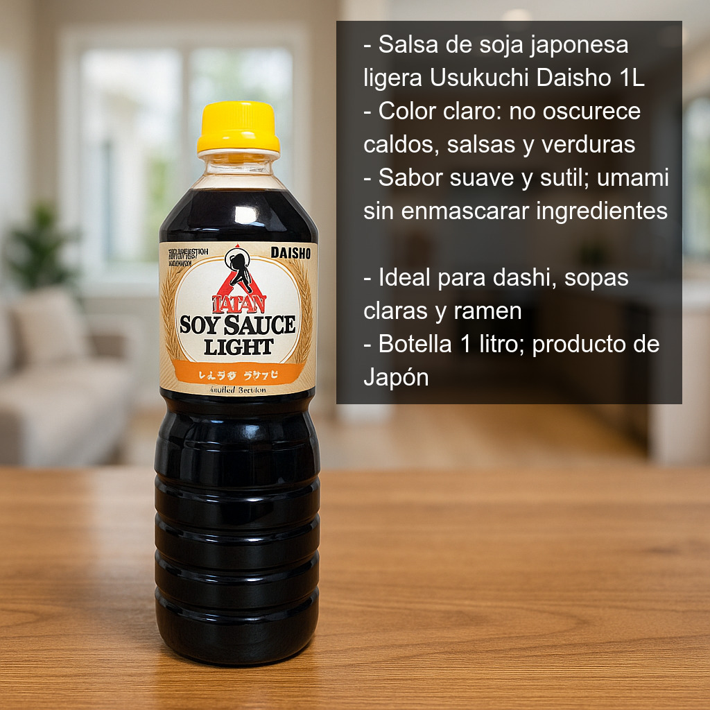 - Tipo: salsa de soja japonesa ligera (Usukuchi).