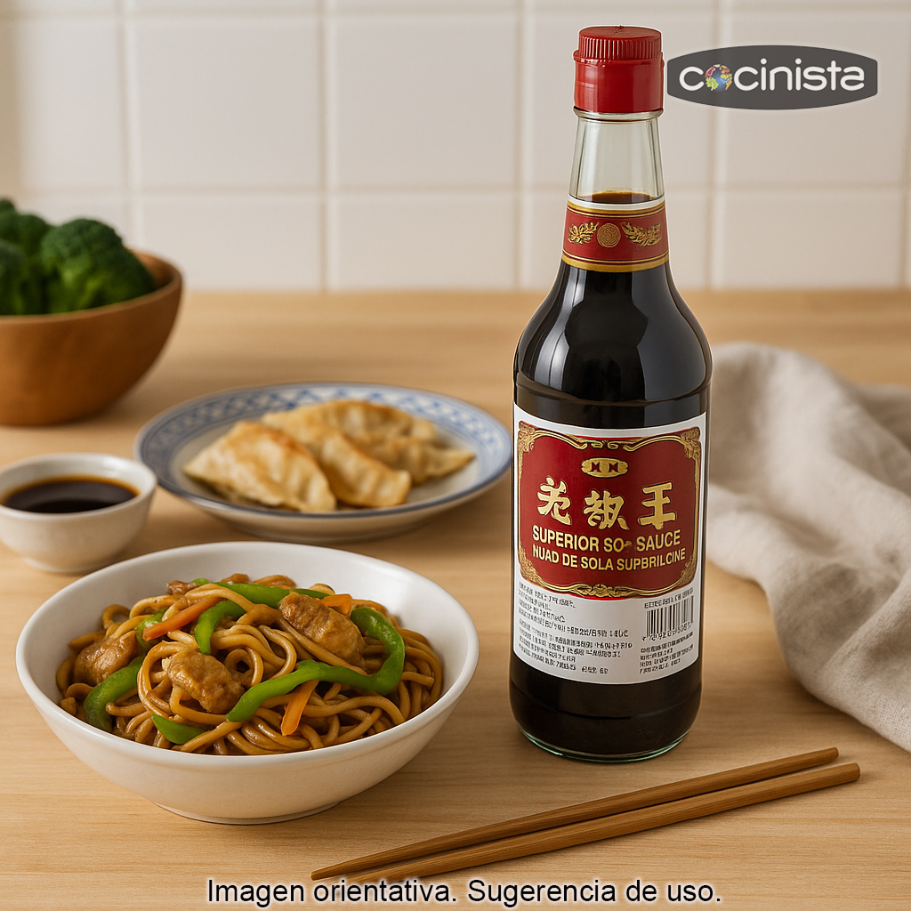 Salsa de soja ligera de calidad superior, ideal para dar un toque asiático auténtico a tus platos del día a día. Esta variedad, conocida también como “thin soy sauce”, destaca por ser más suave y menos intensa que la salsa de soja convencional, con un perfil de sabor equilibrado que realza los ingredientes sin enmascararlos.