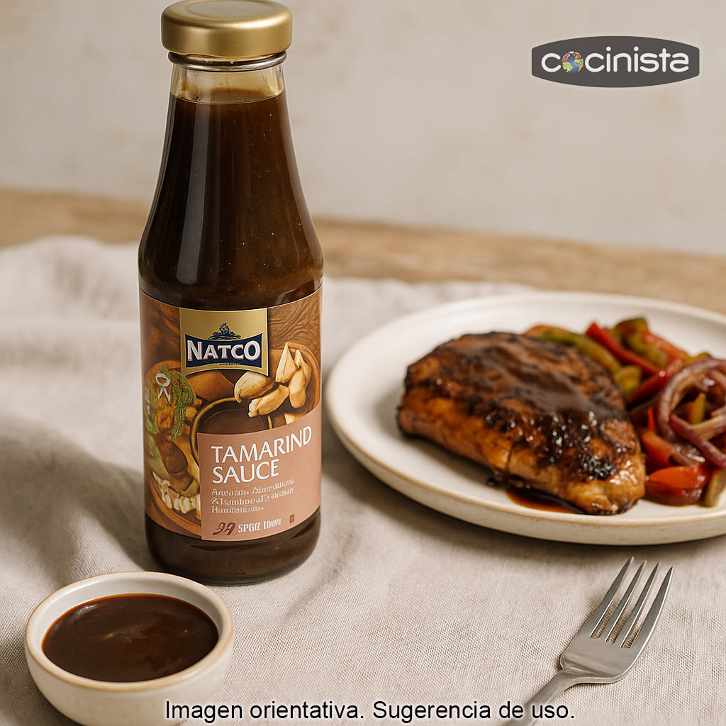 Gracias a su carácter agridulce, esta salsa de tamarindo Natco funciona especialmente bien como acompañamiento de carnes y guisos de sabor potente, pero también es muy versátil en cocina: puedes usarla para realzar marinados, salsas y aderezos, o como toque final para aportar brillo y un punto ácido agradable.
