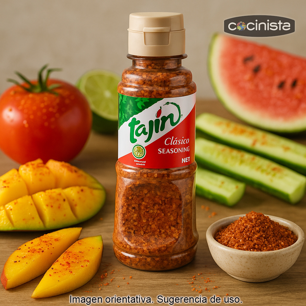 Gracias a su formato en polvo, Tajín se utiliza de forma muy cómoda: basta con espolvorear al gusto para conseguir ese contraste tan característico entre acidez, sal y picante. Es ideal tanto para cocina salada como para frutas y bebidas, y se ha convertido en un imprescindible en hogares y restaurantes.