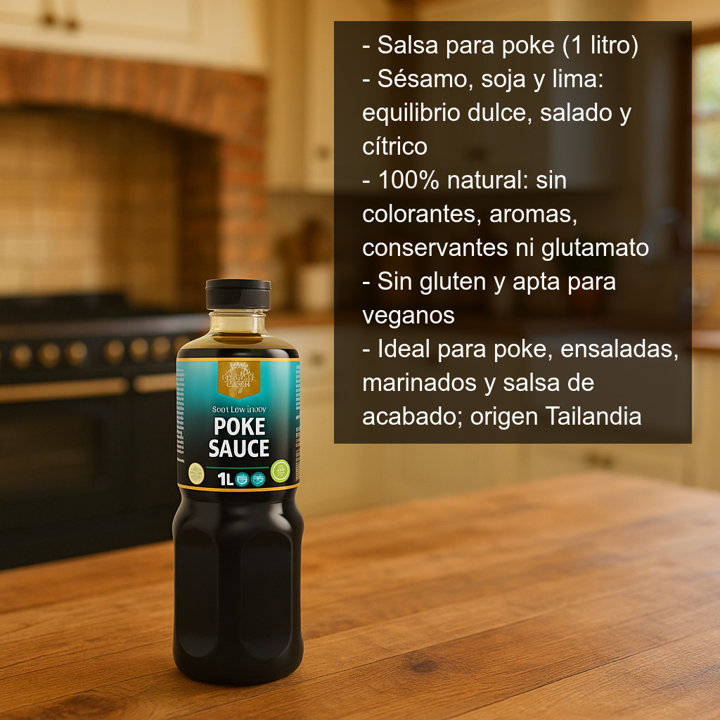 La salsa para poke (1 litro) es un aliño especialmente diseñado para realzar el sabor de tus poke bowls con un equilibrio perfecto entre matices dulces, salados y cítricos. Su receta combina sésamo, salsa de soja y lima, logrando una salsa aromática y muy versátil que aporta un toque fresco y sabroso a cualquier bowl.