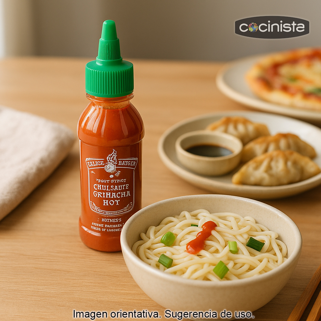 De sabor intenso y equilibrado, esta salsa picante tipo sriracha es ideal para dar un toque extra a recetas del día a día y a platos de inspiración asiática. Si te gusta el picante, se convertirá en un imprescindible para realzar sabores con una sola gota.