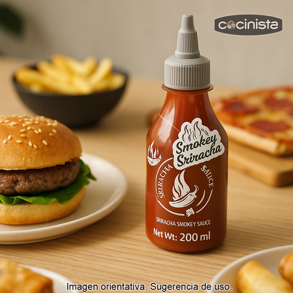 - Tipo: Salsa Sriracha ahumada (smokey)