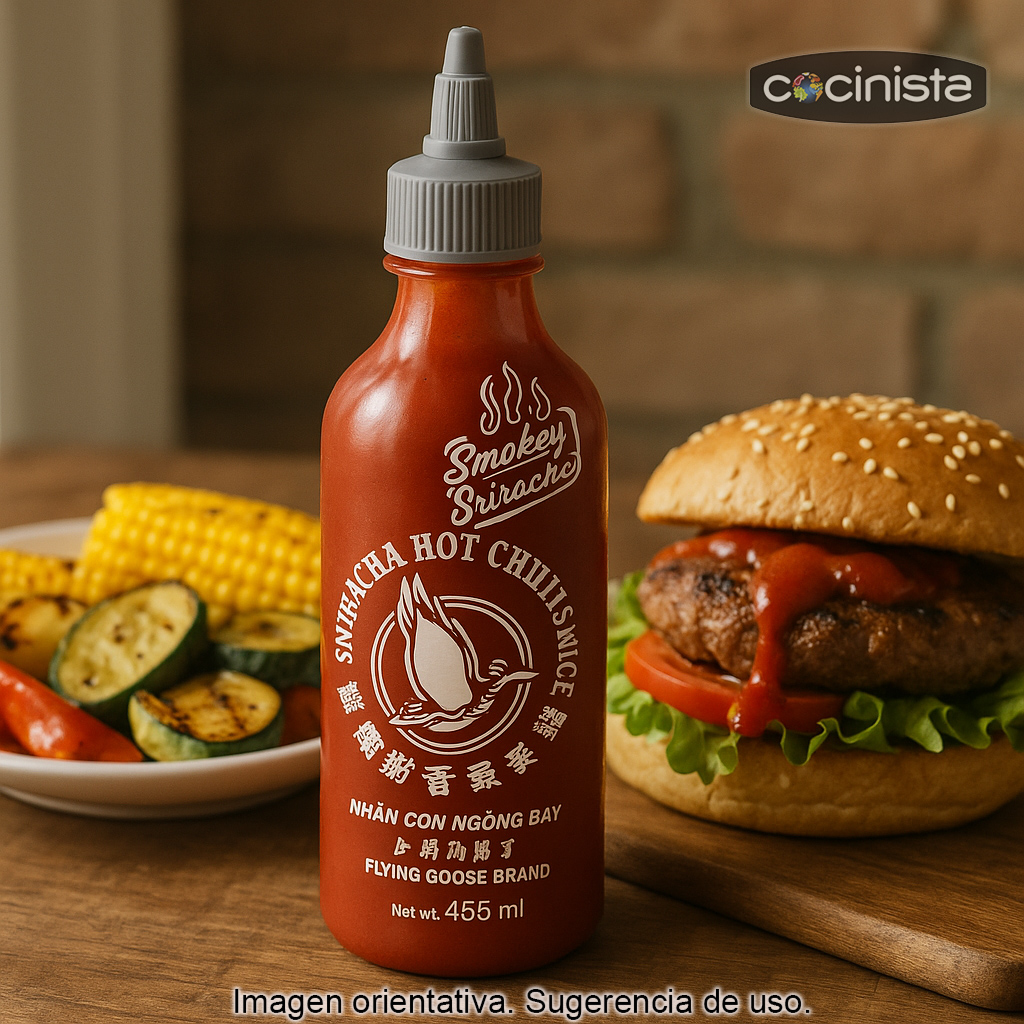 Gracias a su perfil de sabor, esta sriracha ahumada funciona especialmente bien para realzar platos a la parrilla y recetas con notas tostadas. Es perfecta para dar un punto diferente a carnes, verduras y preparaciones rápidas, tanto en cocina casera como en barbacoas.