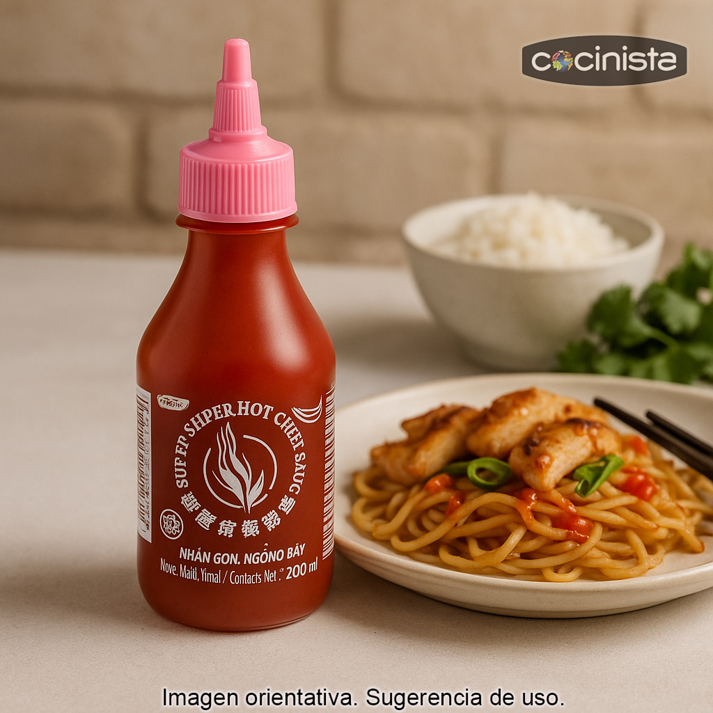 La Salsa Sriracha Picante sin Glutamato (200 ml) es una salsa tailandesa tipo Sriracha (también conocida como Siracha) con un sabor intenso y equilibrado, pensada para quienes buscan un toque picante auténtico sin añadir glutamato monosódico (MSG/MGS). Ideal para realzar tus recetas del día a día con un picante agradable y un perfil aromático muy versátil.