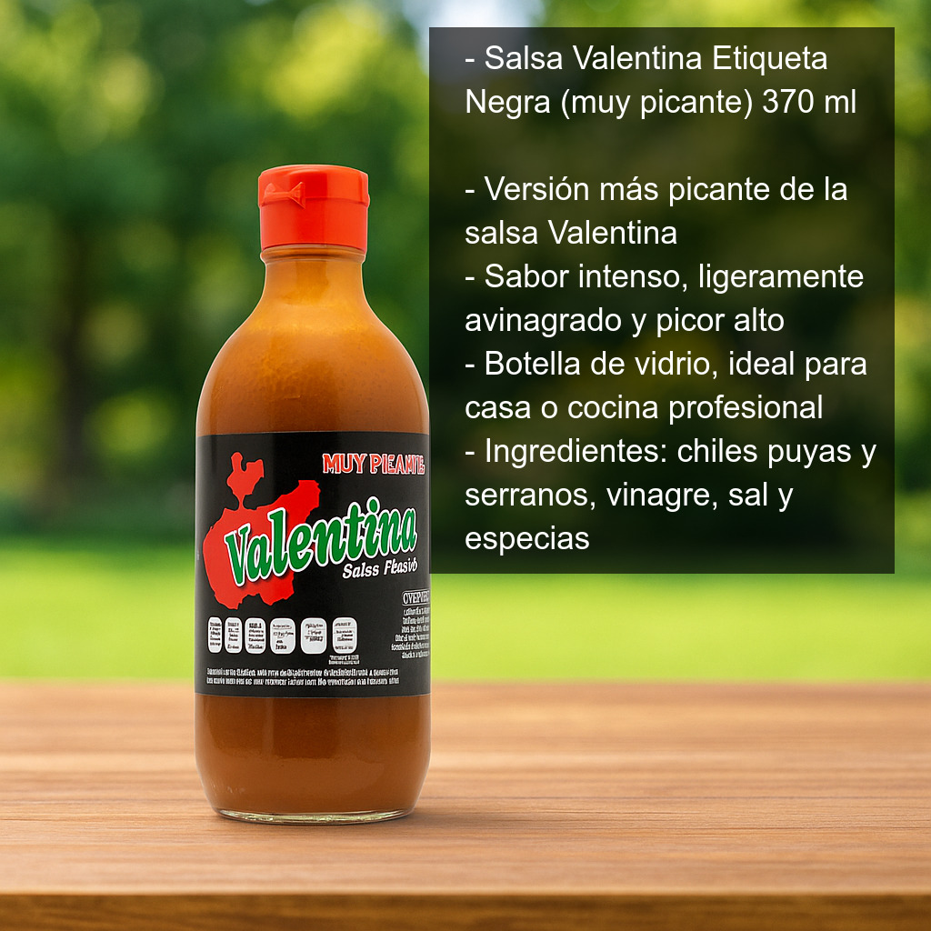 Muy conocida en México y presente en tiendas y supermercados de todo el país, la Valentina Etiqueta Negra se ha convertido también en un imprescindible fuera de México por su versatilidad: funciona tanto como condimento diario como para dar un toque atrevido a recetas tradicionales.