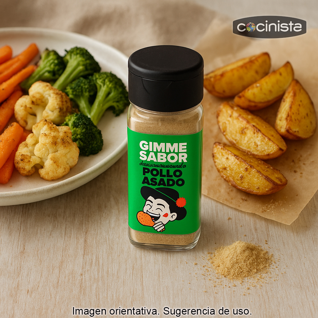 Cómo utilizarlo: espolvorea directamente sobre el alimento antes o después de cocinar, o mézclalo con aceite de oliva para crear un adobo rápido. También puedes incorporarlo a una mezcla de pan rallado o harina para empanados con un toque a pollo asado.