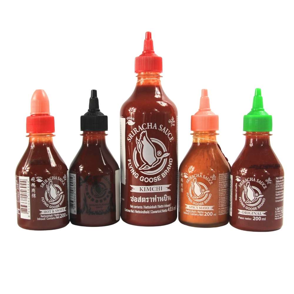 La Sriracha con Kimchi de Flying Goose fusiona el picante característico de la Sriracha tailandesa con el sabor fermentado y umami del kimchi coreano. Su perfil intenso y ligeramente ácido aporta un toque original a platos asiáticos, carnes, arroces y salteados.