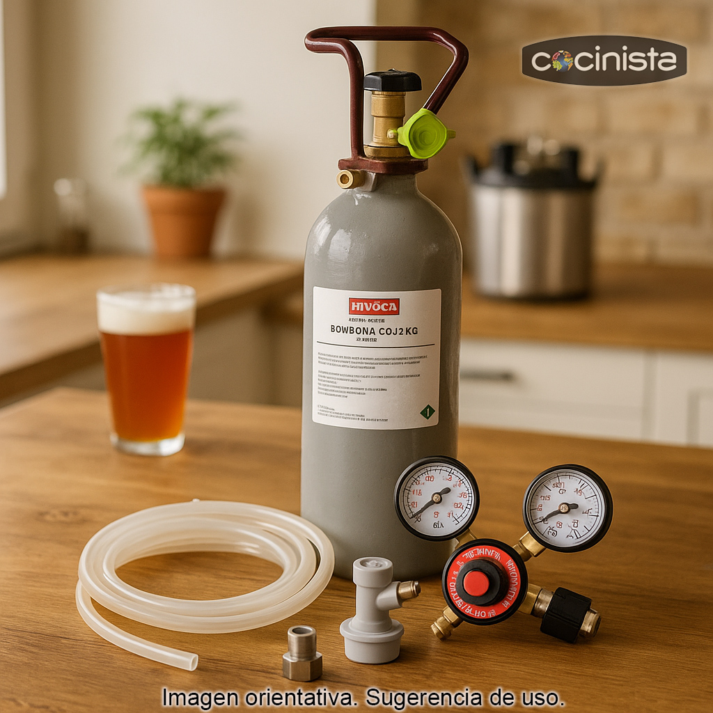 Es una solución ideal para quienes buscan un montaje fiable para homebrewing (cerveza casera), kegerator, dispensadores, o para carbonatar agua, refrescos, kombucha u otras bebidas en barril. Con una bombona de 2 kg tendrás una autonomía muy superior a las cápsulas pequeñas, con un coste por uso más bajo y mayor comodidad.