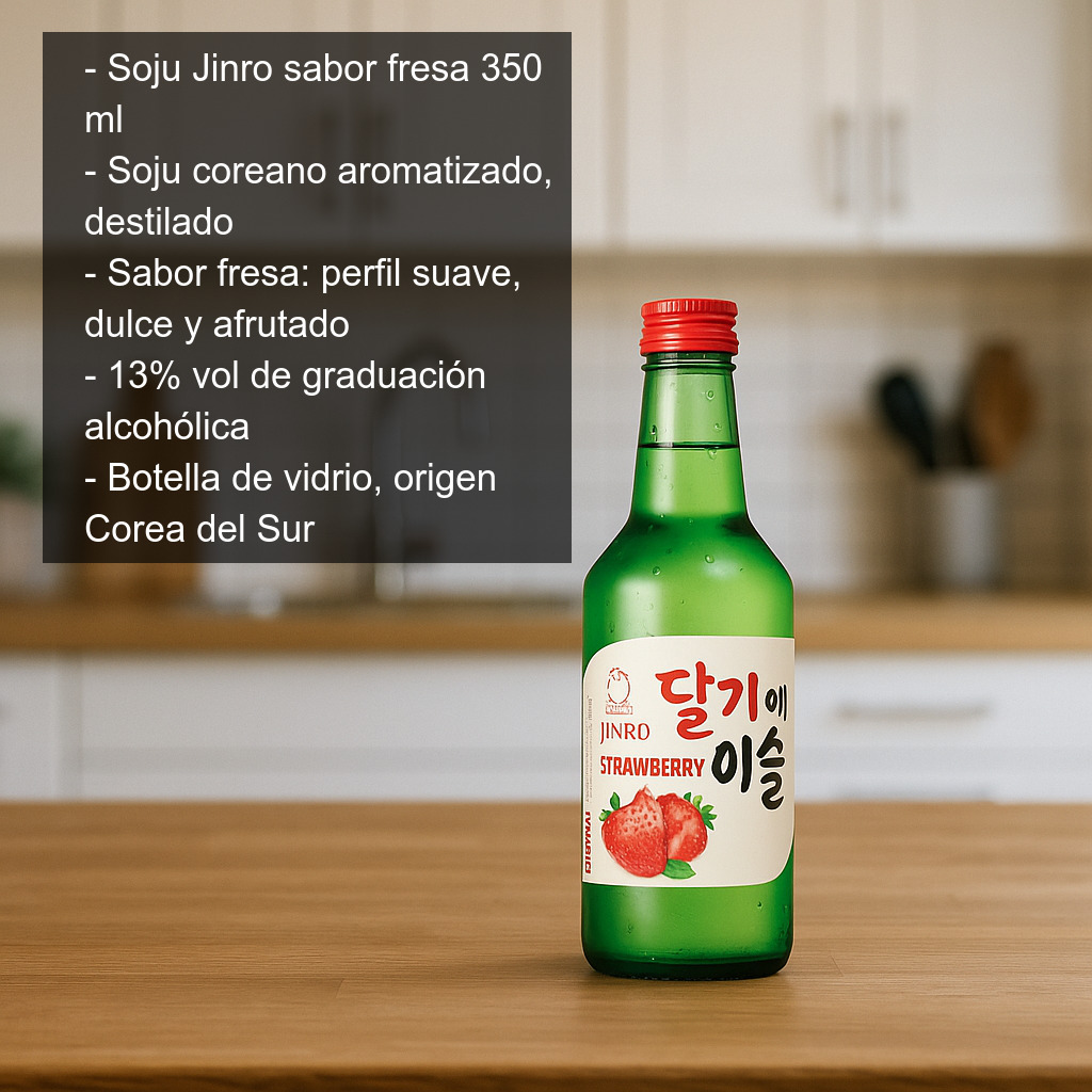 Descubre el soju coreano sabor fresa de Jinro, una de las marcas más reconocidas de Corea del Sur. El soju es una bebida destilada tradicional coreana elaborada a partir de arroz y otros almidones, famosa por su perfil suave y fácil de beber, con un grado alcohólico moderado en comparación con otros destilados.