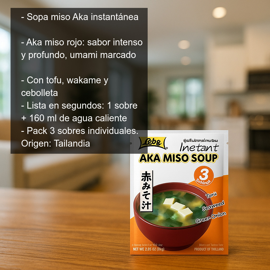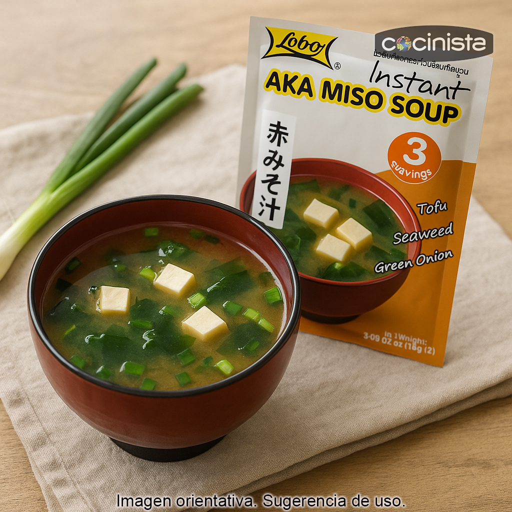Disfruta en casa de una de las sopas más emblemáticas de la gastronomía japonesa con esta sopa miso Aka instantánea. Está elaborada con Aka miso, la variedad de miso rojo de sabor más intenso y profundo, ideal para quienes buscan un caldo con más carácter y un toque umami marcado.
