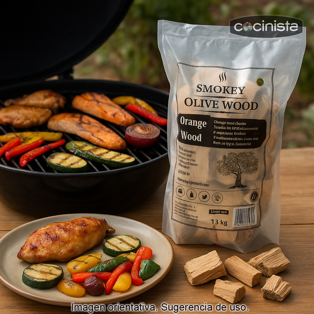 La madera de naranjo es especialmente apreciada en barbacoas y ahumados por su aroma limpio y su capacidad para acompañar tanto carnes como pescados y verduras. Es una elección excelente para preparar platos con un toque mediterráneo y para quienes disfrutan experimentando con diferentes maderas de ahumado.