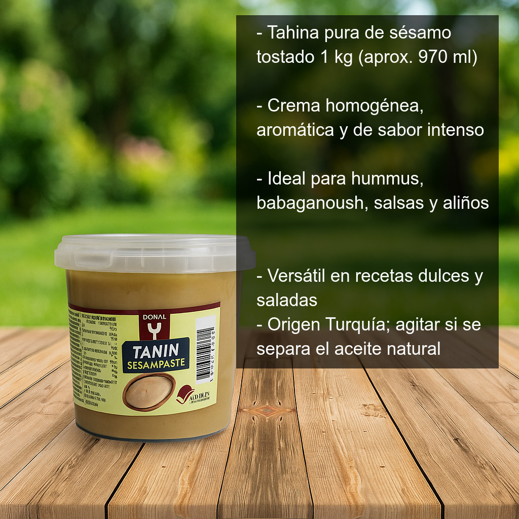 Su textura cremosa y su sabor ligeramente tostado la convierten en el aliado perfecto para preparar hummus casero, babaganoush, salsas y aliños. También es ideal para enriquecer platos de verduras, legumbres y cereales, o para dar un toque especial a postres y desayunos.