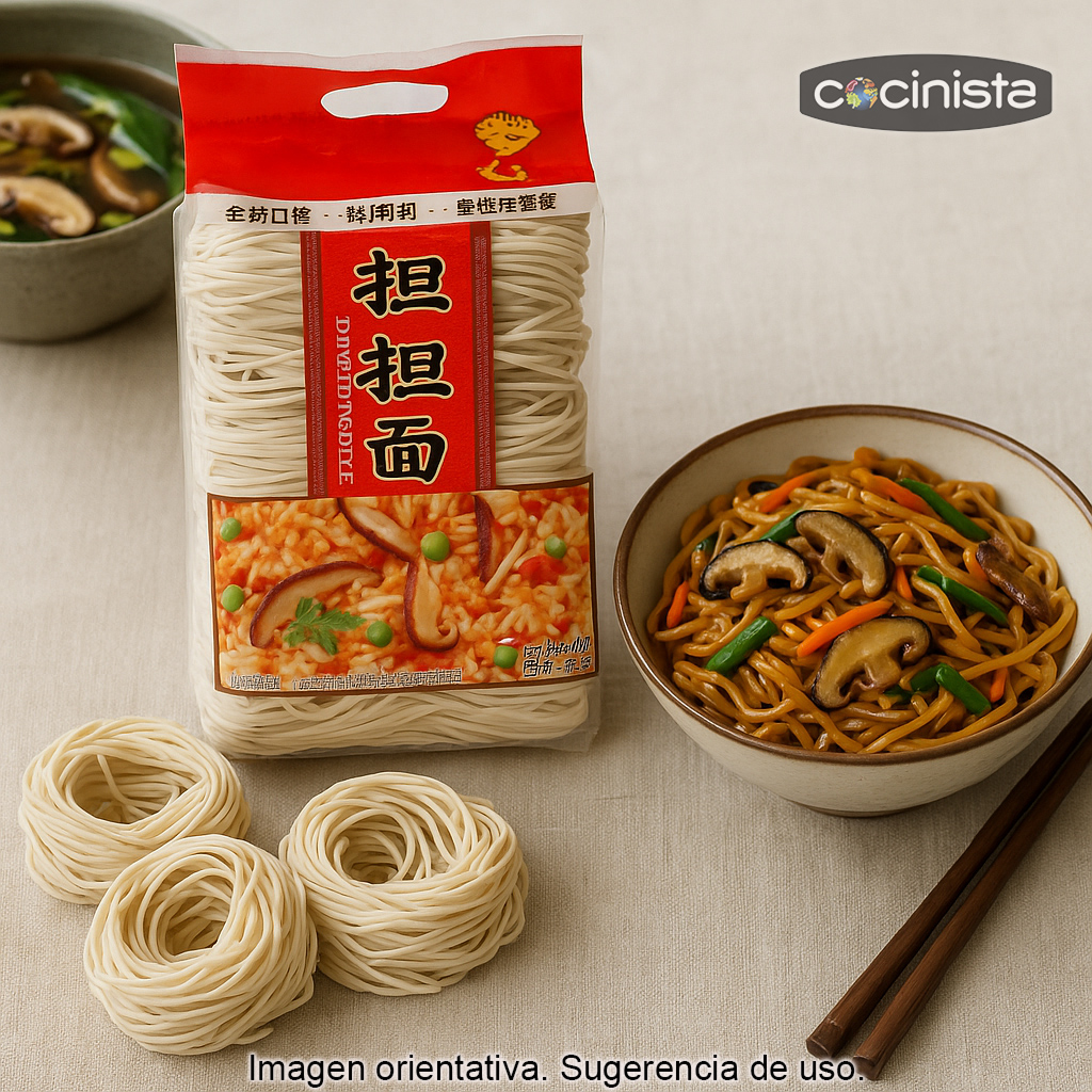 Ideas de uso: tallarines salteados con verduras y salsa de soja, fideos con ternera y jengibre, sopa de fideos con setas, o como acompañamiento de platos con salsas intensas (soja, ostras, sésamo, chili, etc.).
