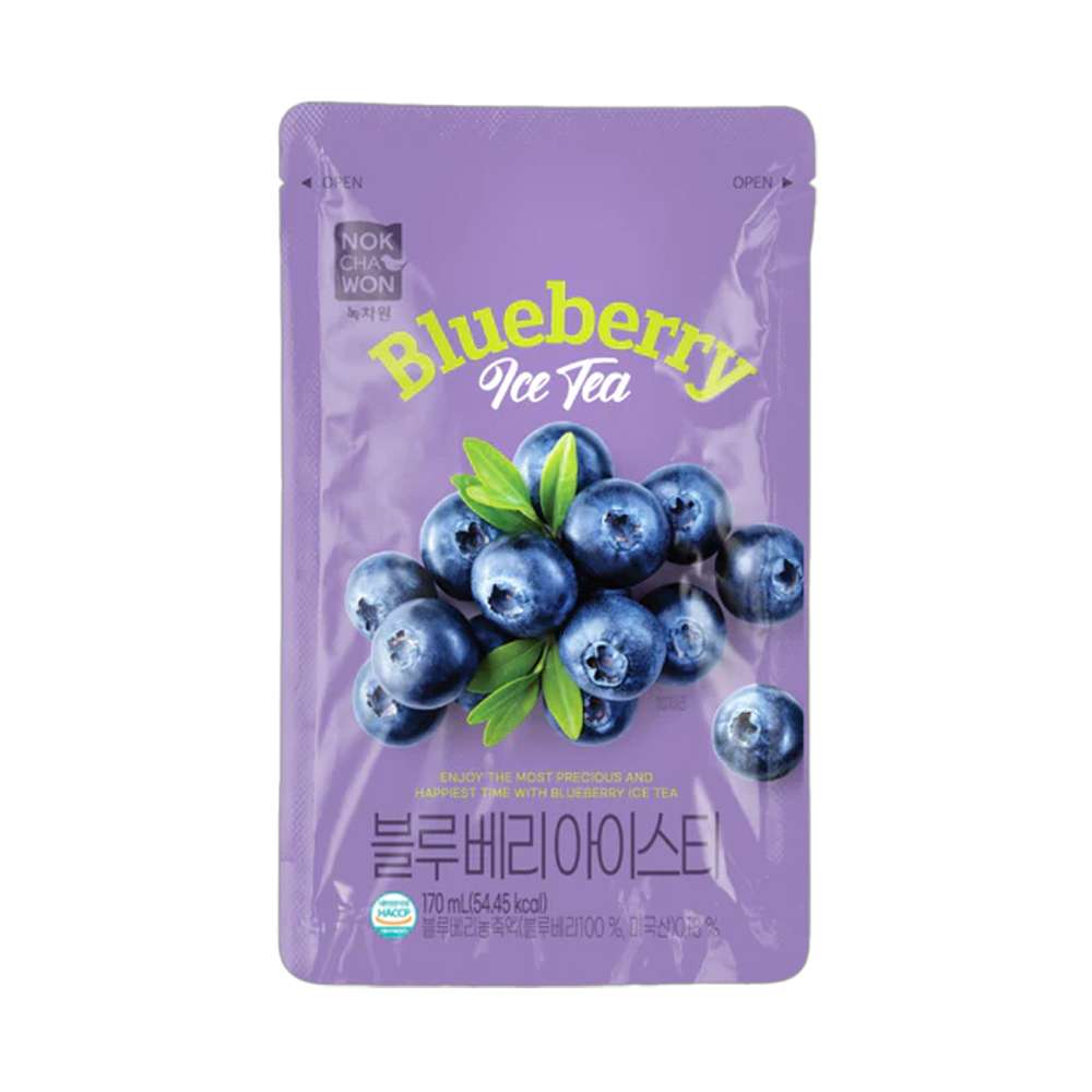 El té helado de arándano Blueberry Ice Tea de Nok Cha Won es una bebida coreana lista para tomar, con un sabor suave, afrutado y muy refrescante. Combina el carácter ligero del té con el dulzor y aroma del arándano, dando como resultado una bebida agradable, fácil de beber y perfecta para disfrutar bien fría en cualquier momento del día.
