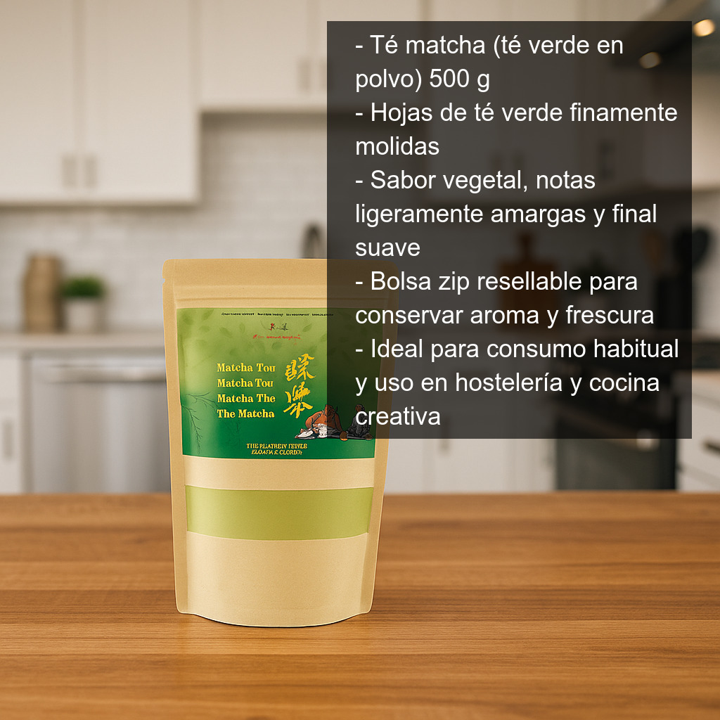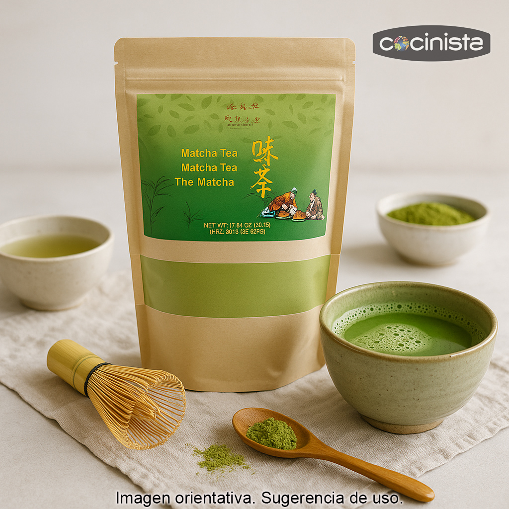 Té matcha (té verde en polvo) 500 g para preparar en casa una de las bebidas más emblemáticas de la tradición asiática. El matcha se obtiene a partir de hojas de té verde finamente molidas, lo que permite disfrutar del té completo en forma de polvo, con un sabor vegetal característico, notas ligeramente amargas y un final suave.